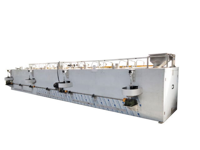 全自動平(píng)麵回轉烤爐主要用於堅果炒貨(huò)及籽類產品裹衣裹粉後的烘烤加工。采用(yòng)直燃式加熱方(fāng)式,熱量直接作用於食品上,烘烤香味更濃鬱,並通過設備的(de)搖擺避免食品粘連(lián)變形。具有烘烤口味色澤(zé)優良, 沒有汙染等特點。