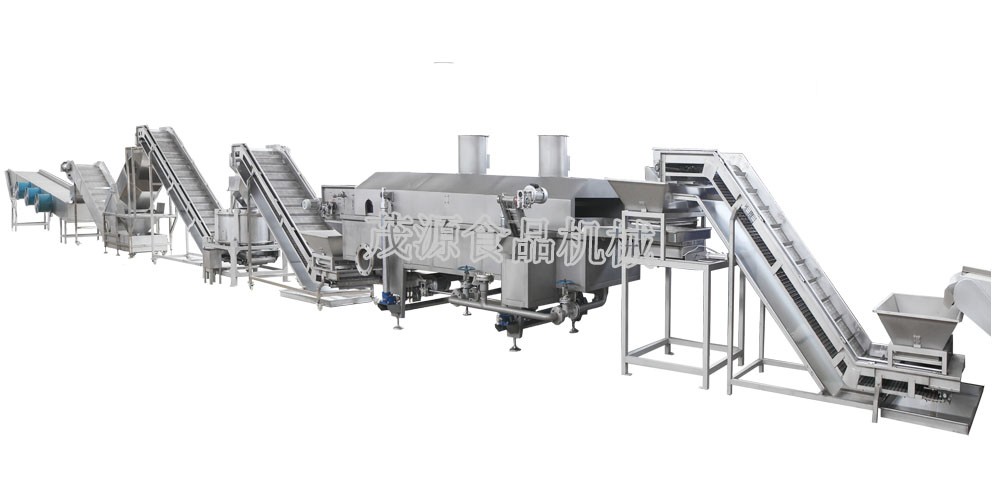 網帶式連續油炸生產線可(kě)廣泛應用於豆類、堅果、裹粉顆粒食品、薯片、薯(shǔ)條(tiáo)、膨化食品等加(jiā)工生產。